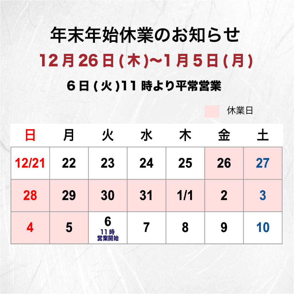 <年始営業>  2025年1月6日(火)11時より